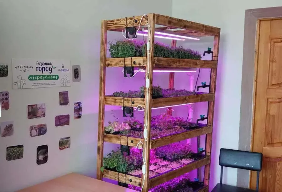 «Другий стелаж нам вдруге надав наш партнер — провідна агрокомпанія краю «Ґудвеллі Україна», за що ми їм щиро вдячні, адже починаємо поступово його заповнювати. Самостійно щоразу з учнями вивчаємо нові культури та пробуємо їх виростити. Наприклад, базилік росте до двох тижнів. Щавель пробували двічі садити, але сходить лише близько третини. Дивимось, що й інші учасники проєкту його «забанили». Двічі вирощували як декоративну добавку мелісу».