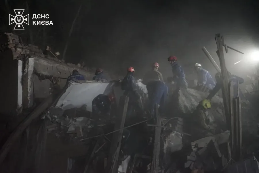 Наразі у п'яти районах столиці триває ліквідація наслідків нічного обстрілу. Працюють психологи та кінологи ДСНС.