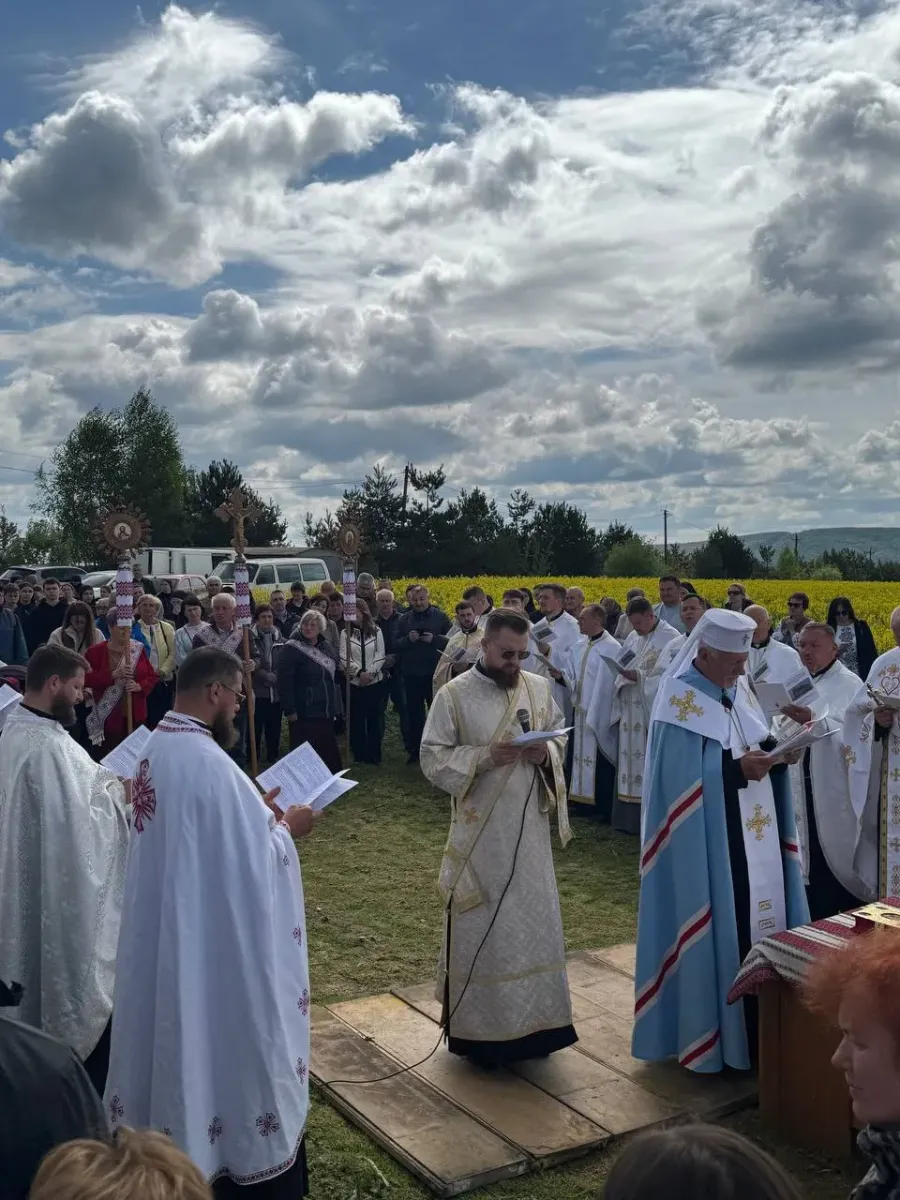 Насамкінець присутні процесійно вирушили до місця, на якому згодом постане святиня, де відбувся Чин освячення хреста та земельної ділянки.