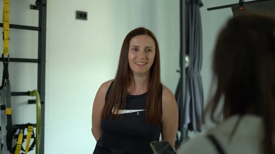 «Здоров’я підтримувати важливо і потрібно. Спорт розвантажує голову. У час ковіду ми з чоловіком трохи сиділи без роботи вдома, тому часто на велосипедах каталися, зокрема, на Войнилівський напрямок. Я бігала, щоб підтримувати форму, бо на більше як мама трьох дітей не мала часу. Давно хотіла записатись на заняття, бо спорт — це рух і розминання м’язів. Я люблю екстрим, а чоловік завжди радив починати з меншого. Після першого заняття фітнесом моментами зауважувала біль у ногах та спині — це були найбільше закам’янілі м’язи».
