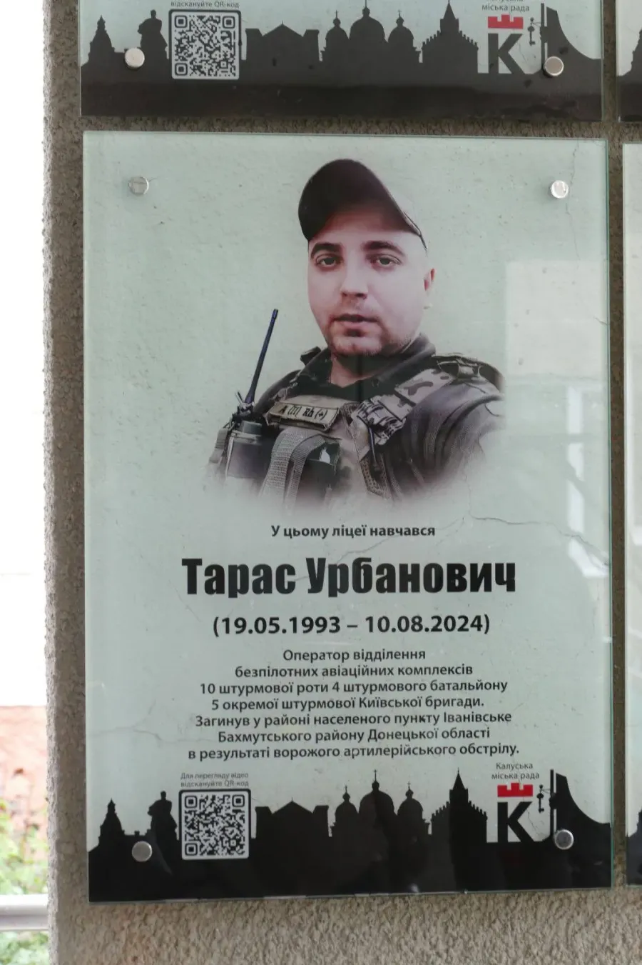 «Тарас був люблячим, чуйним, добрим сином, внуком, братом, племінником, а для мене — похресником. Я ніколи б не подумала, що ця роль для мене буде такою трагічною, — поділилася хресна мати Героя Тараса Урбановича. — За декілька днів, 19 травня, мала б бути приємна подія — його день народження. Це зовсім недавно він ходив у школу: веселився, сміявся, іноді й пустував, як це роблять діти. Але був щирим, добрим, компанійським хлопцем. Якось, після поранення приїхавши у Калуш, прийшов до мене на роботу і багато розповідав про плани на майбутнє, про здоров’я батьків. Про побратимів, яких дуже любив і хвилювався за них більше, ніж за себе. Скільки пам’яті про Тараса тримають ці стіни! Меморіальні дошки, які сьогодні відкриваємо, — не просто символи, а мовчазні голоси, які промовляють до нас: «Цінуйте те, що маєте! Пам’ятайте про тих, хто боровся за вас і продовжуйте шлях, яких вони почали».