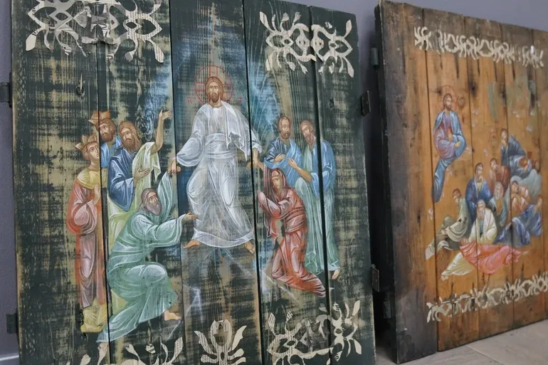 Ікони на ящиках з-під артснарядів. Фото: Олександр Клименко/Фейсбук