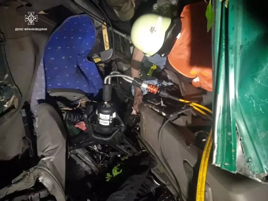 Рятувальники, які прибули на місце події, деблокували постраждалого чоловіка з салону транспортного засобу, повідомляє Головне управління ДСНС в Івано-Франківській області.