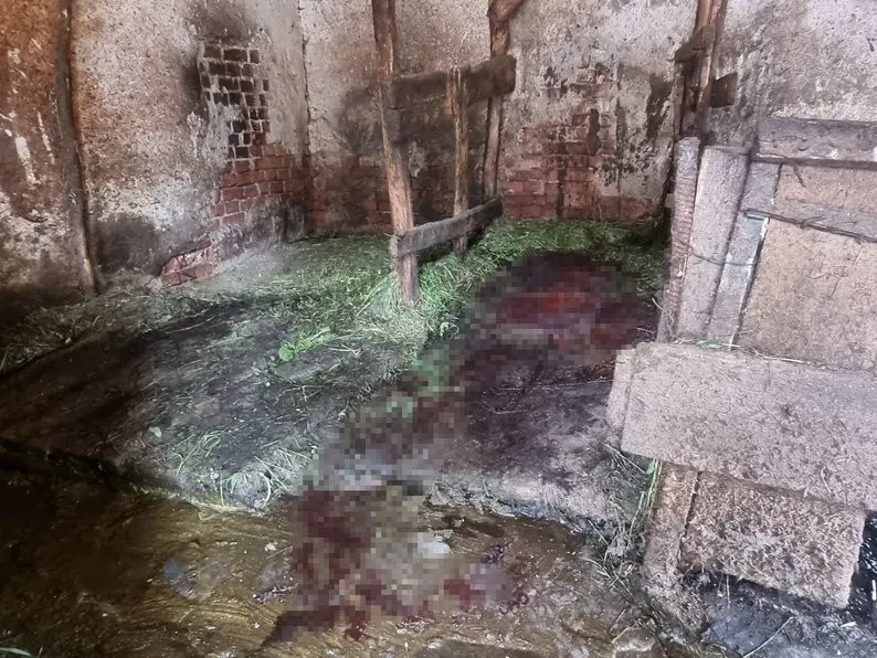 "Ветлікар зашив її — витягнув два уламки. У свиней ребра побиті. То все в крові було. Вже прибрали", — каже Микола Харук.