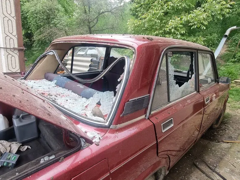 Зі слів Марії Харук, уламки безпілотника пошкодили вісім вікон й троє дверей у двох будинках, понівечили дві автівки, побили фасад дому та пробили дах у стайні. Посеред городу — вирва. Прибирати господарям допомагають сусіди.