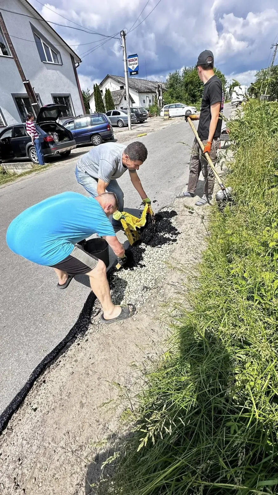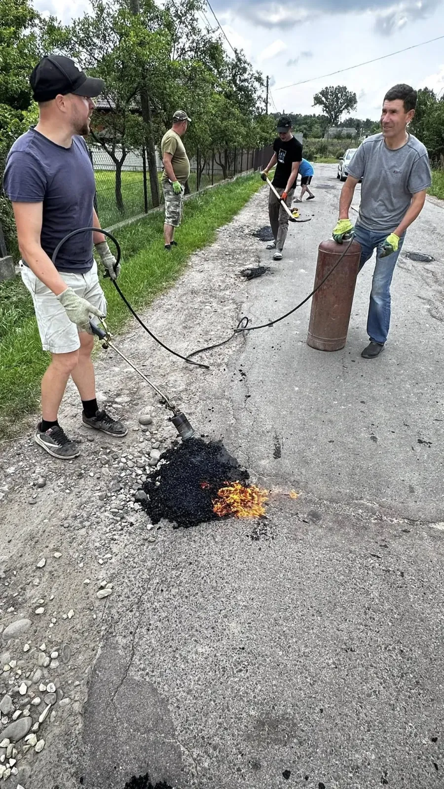 Голиняни використали 66 мішків асфальту і залатали 100 дорожніх ям. Витрати склали 17 000 гривень на асфальт, заправку газового балона і щебінь.