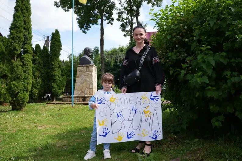 Сестра Юрія Варцаб'юка Надія Ткачук до зустрічі з братом разом з донькою підготувала плакат. Жінка каже, що також ходила на акції на підтримку військовополонених.