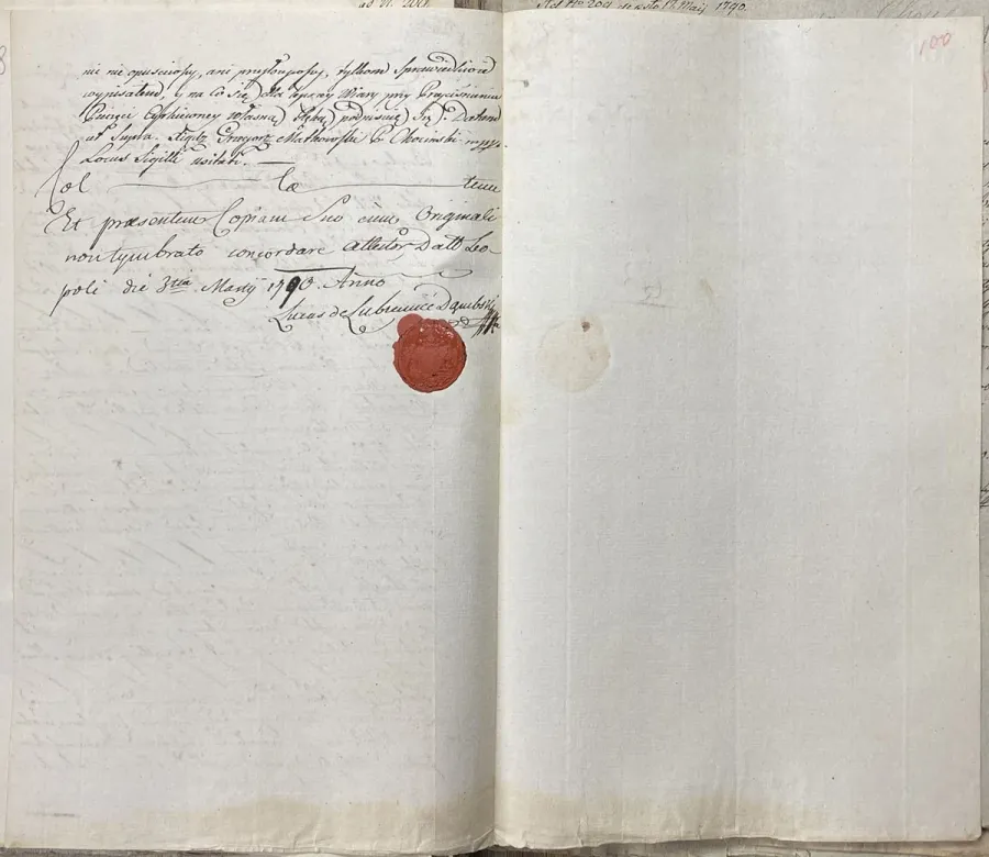 Наявна копія відповідає оригіналові без штампу відповідно змінена, дана у Львові дня 3-го березня 1790 року.