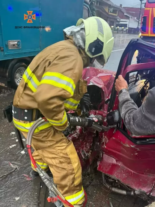 Головне управління ДСНС України в Івано-Франківській області повідомило, що на місці аварії рятувальники деблокували затиснутого чоловіка з понівеченого автомобіля та передали його працівникам екстреної медичної допомоги.