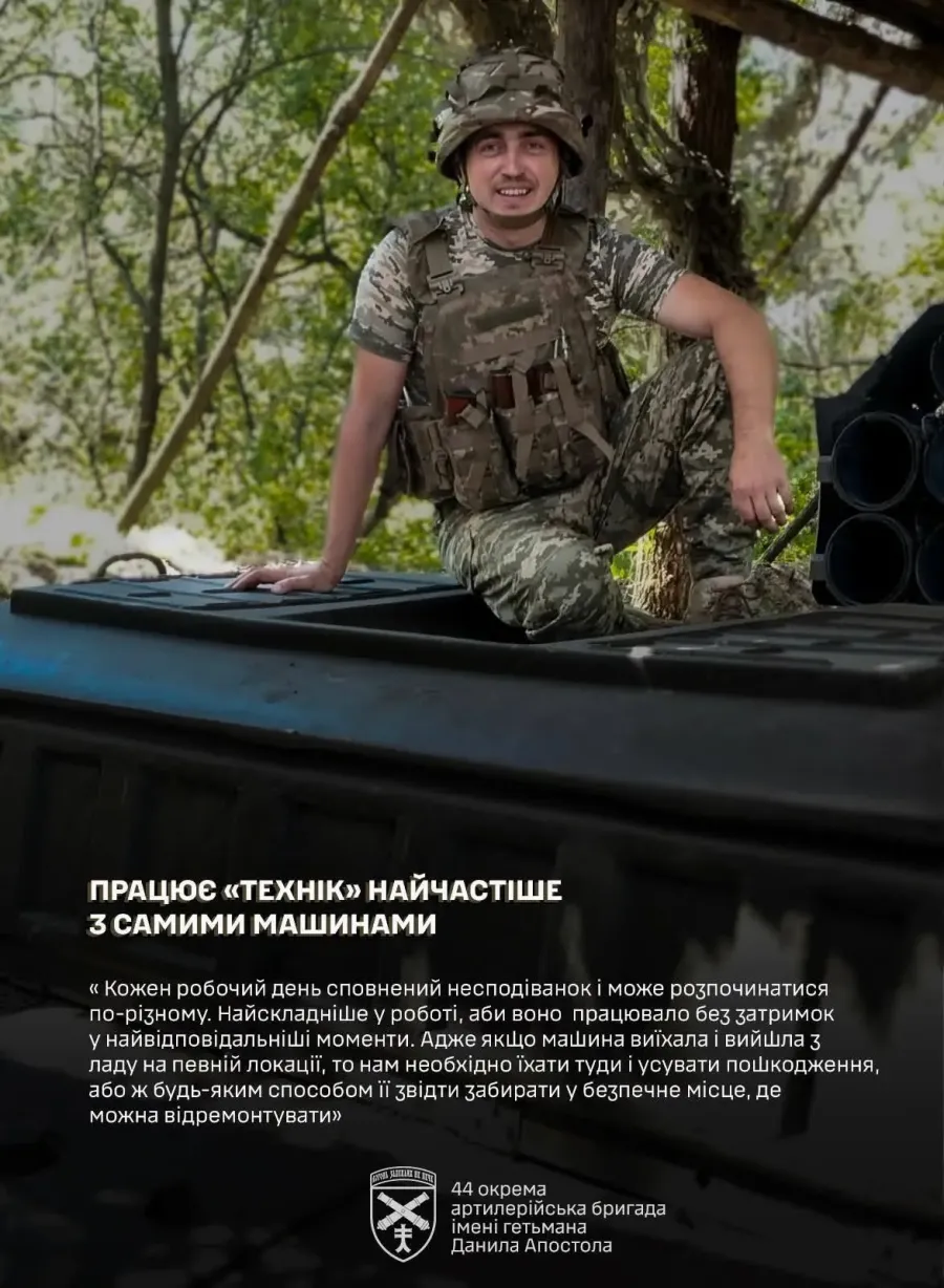 Технік реактивної артилерійської батареї 44-ї окремої артилерійської бригади імені гетьмана Данила Апостола головний сержант Павло займає теперішню посаду з 2023 року. До цього працював номером обслуги та навідником гармати. Зараз фах військового передбачає відповідальність за справність техніки, випускання машин після перевірки для виконання бойових завдань, інструктажі водіїв тощо.