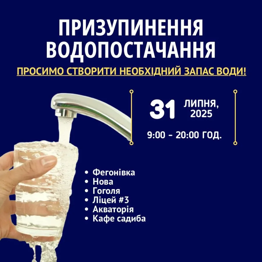 Відновити подання води обіцяють того ж дня, 31 липня, до 20:00.