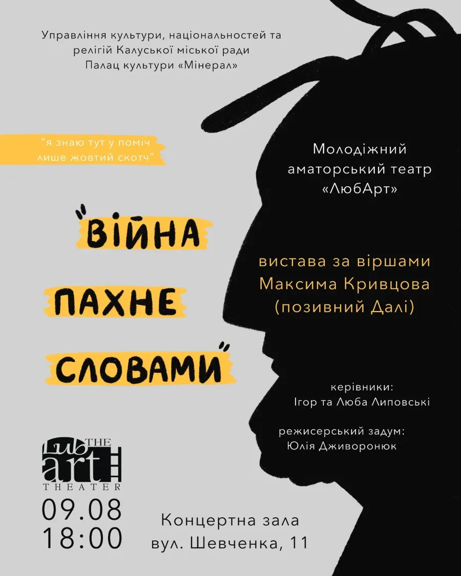 Режисерський задум вистави за віршами Максима "Далі" Кривцова належить Юлії Дживоронюк.