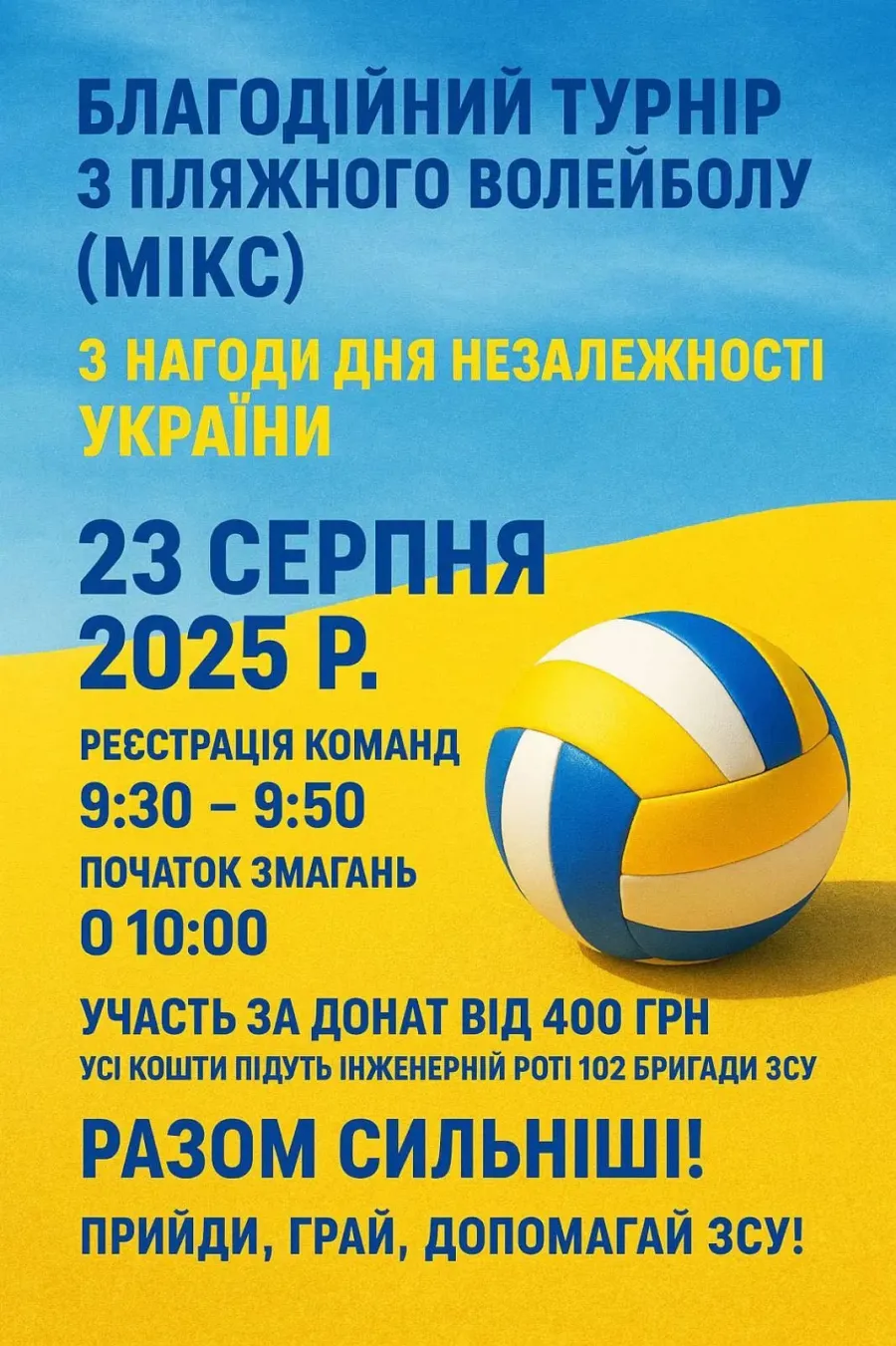 "Кожен ваш удар по м’ячу — це ще один крок до нашої спільної Перемоги! Навіть якщо ви не граєте у волейбол — приходьте повболівати, підтримати друзів, зробити свій внесок та відчути енергію цього особливого дня", — закликають організатори.
