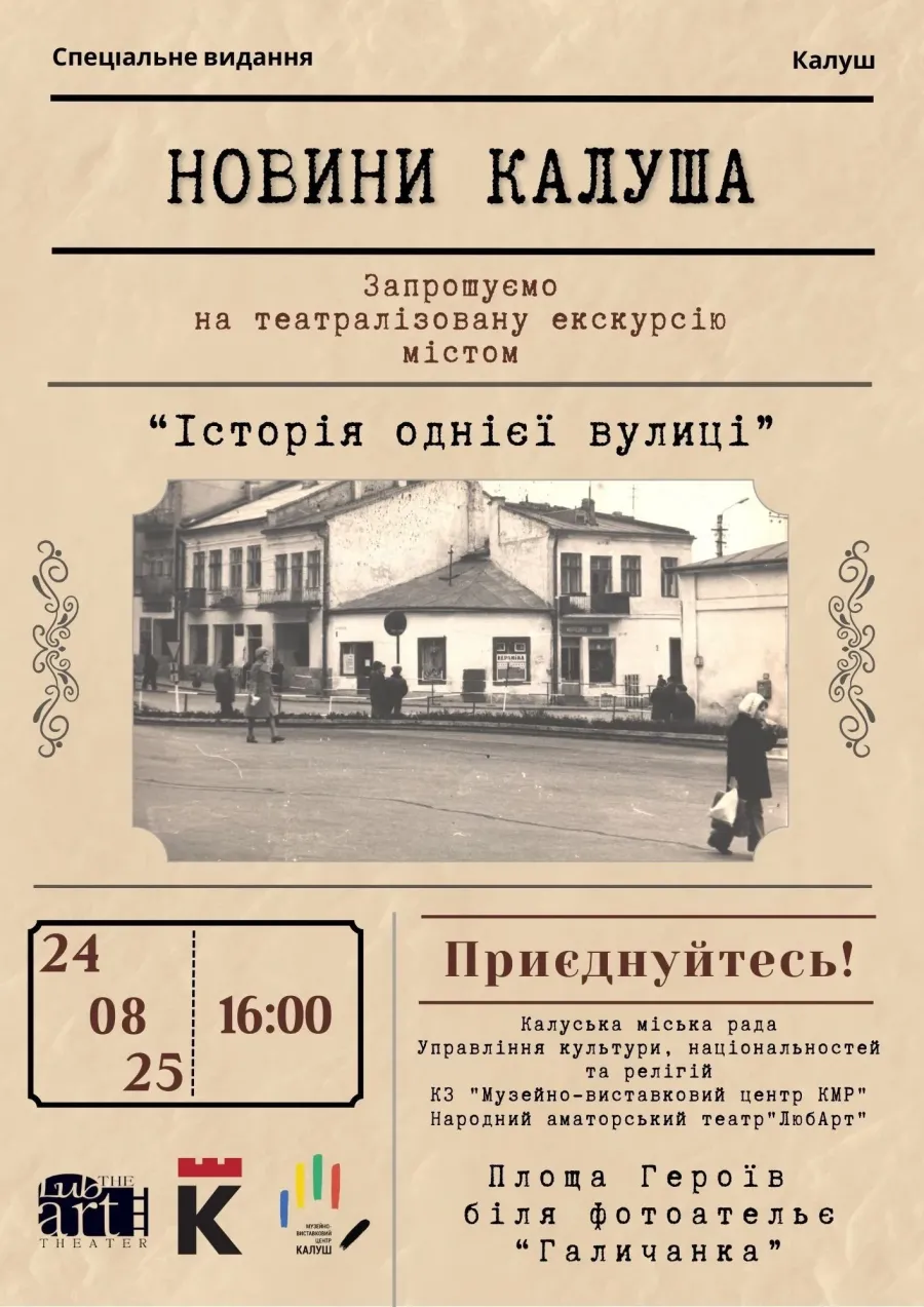 «Крім Людмили Андрійчук, старшої наукової співробітниці меморіального музею «Калуська в’язниця», котра зазвичай у нас по місту проводить екскурсії, долучиться ще знаний краєзнавець, художник, лауреат премії Рубчака — Ігор Бойкович. Також залучимо акторів народного аматорського театру «ЛюбАрт» (керівниця Любов Липовська)».