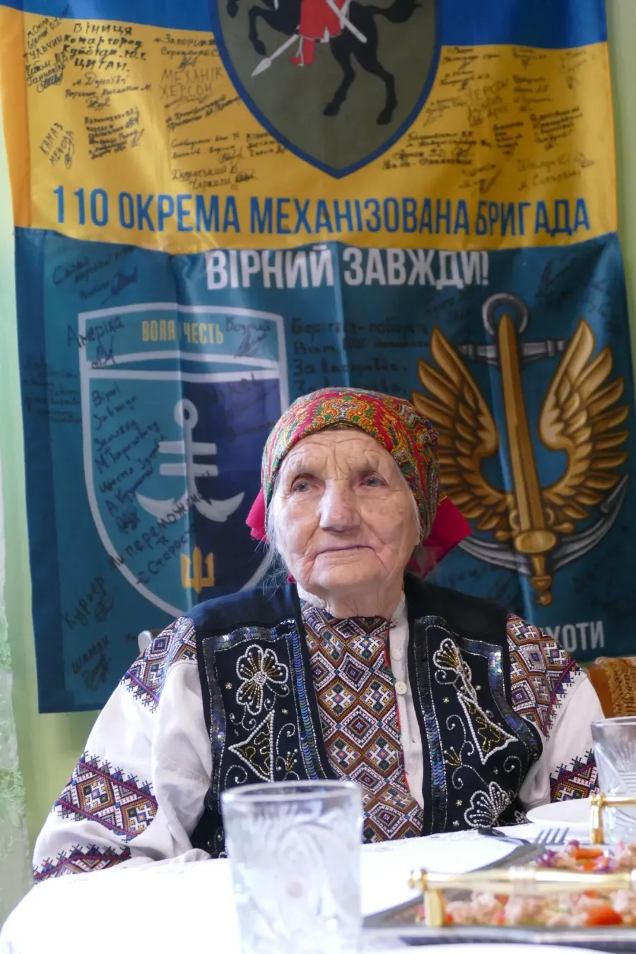 Як і на своє 100-річчя, іменинниця зустрічає гостей у вишиванці власної роботи, у якій колись ішла під вінець. Дзвінко з її уст лунає духовний гімн України, який підхопили присутні.
