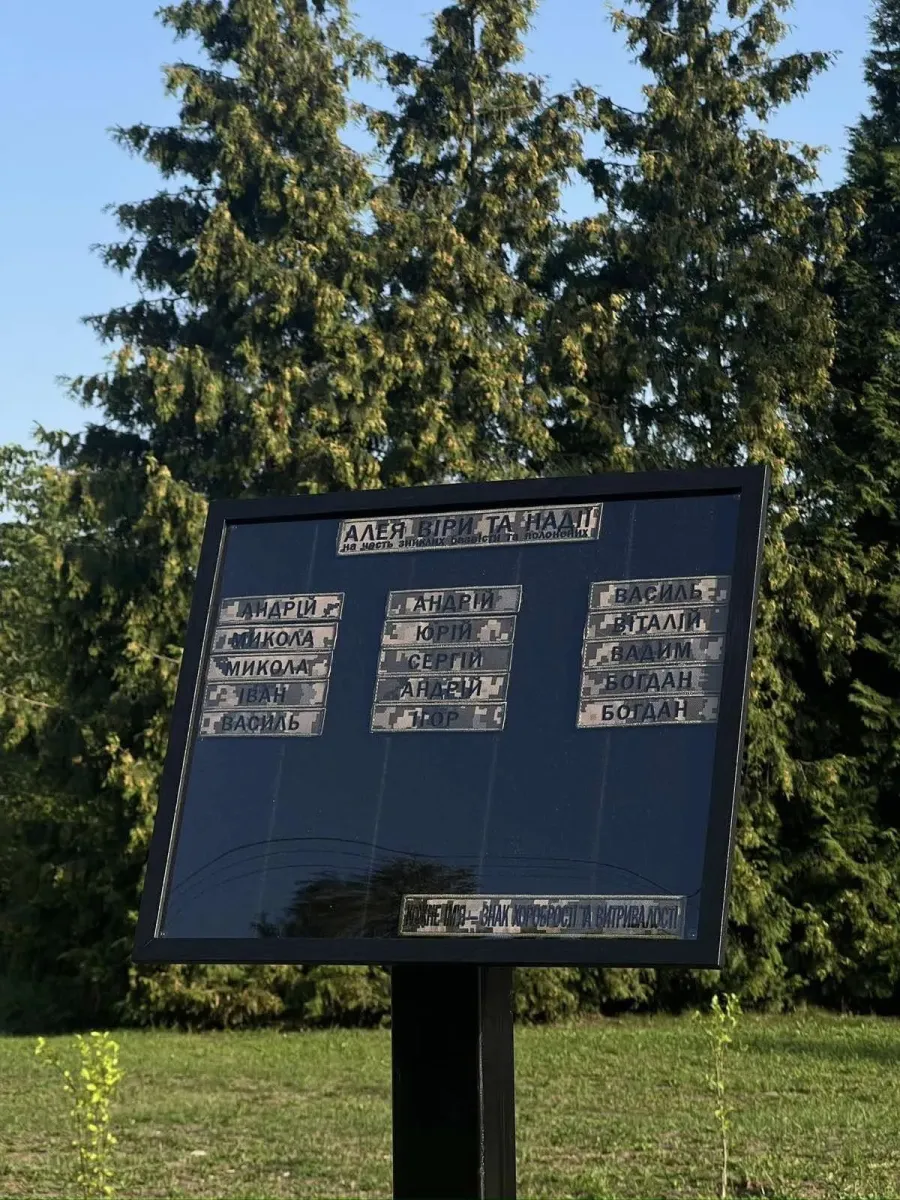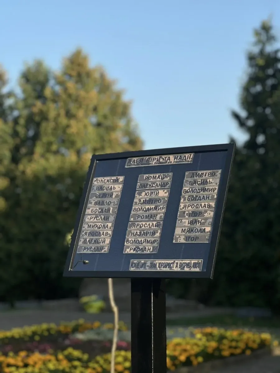 На Алеї віри і надії у Калуші встановили особливу конструкцію для збереження шевронів Захисників, які зникли безвісти чи перебувають у полоні, йдеться в офіційній інформації.