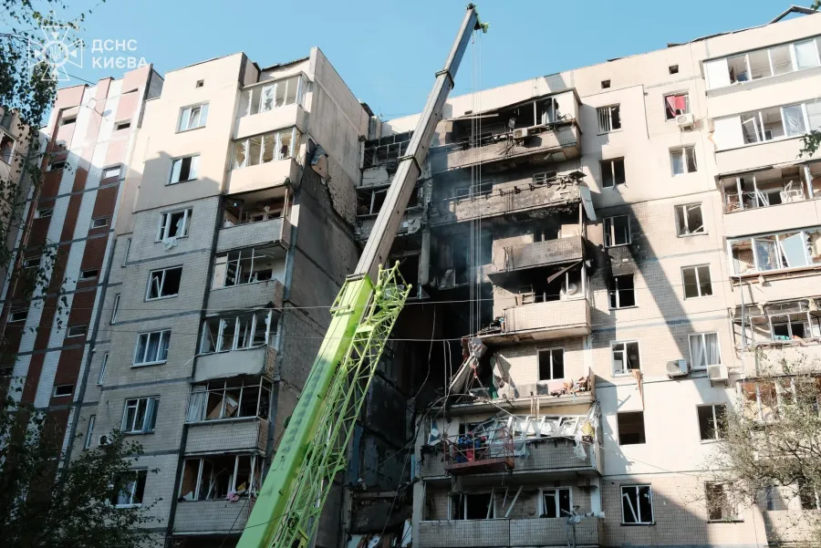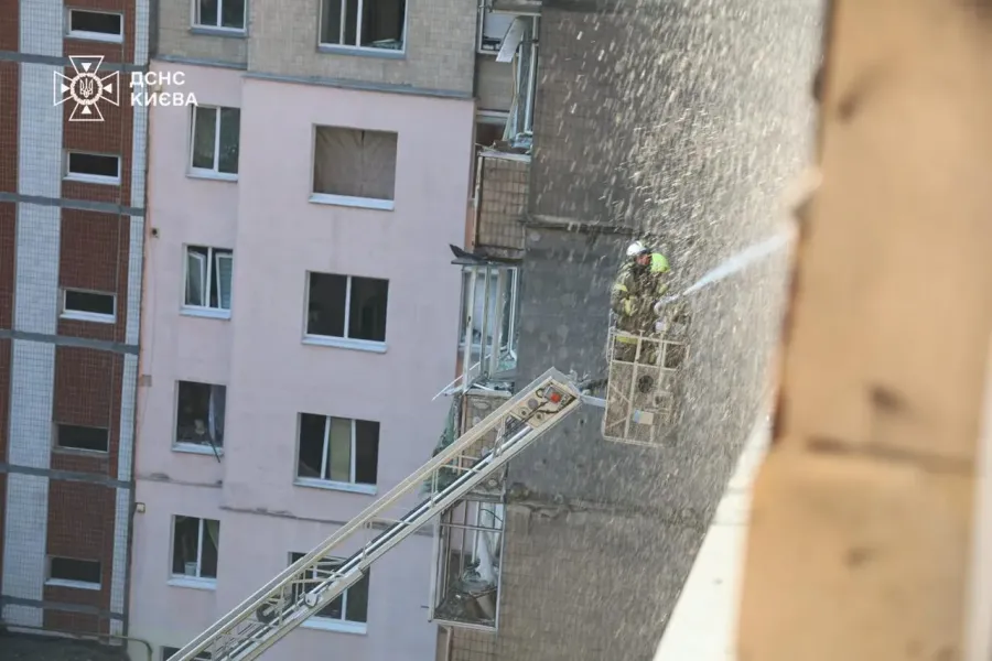 У Києві пошкоджено цивільну інфраструктуру, зокрема 4 житлові багатоповерхівки. У Святошинському районі триває гасіння пожежі та розбір завалів. Є обвал частини будинку.