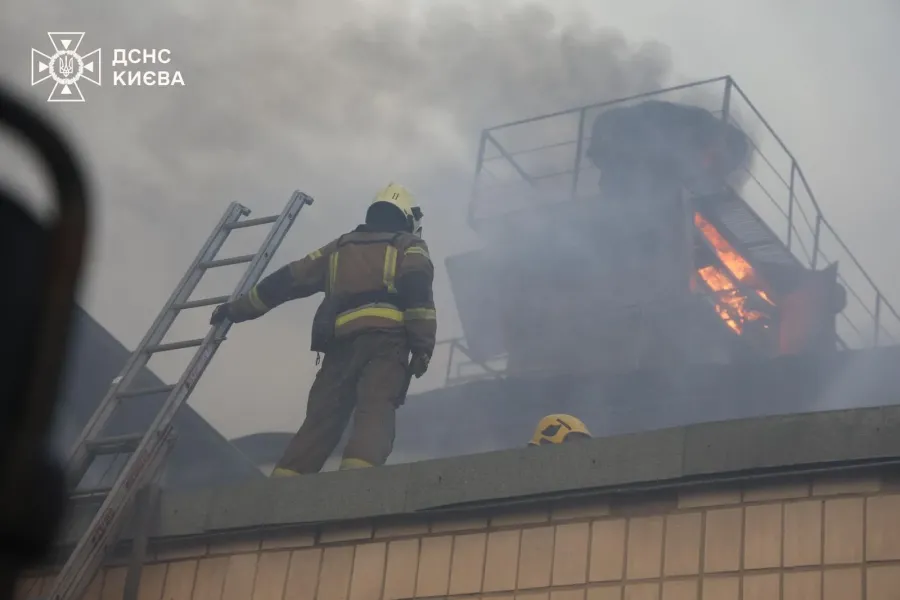 Влучання також у будівлю Уряду України. Рятувальники локалізували пожежу площею понад 1 тис. кв. метрів та продовжують її гасіння.