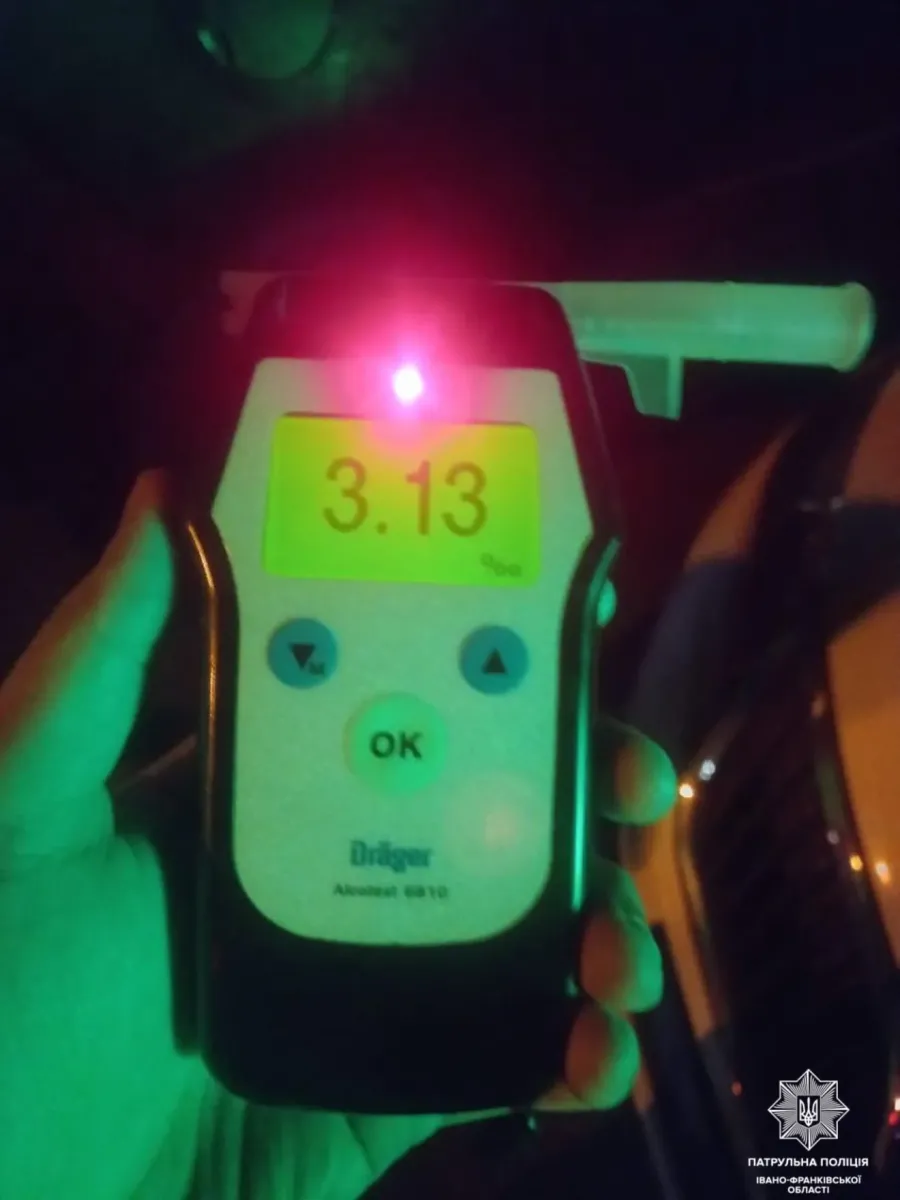 Під час спілкування з 43-річною кермувальницею Renault інспектори виявили в неї ознаки алкогольного сп’яніння. Освідування підтвердило: у її крові було 3.13 проміле алкоголю.