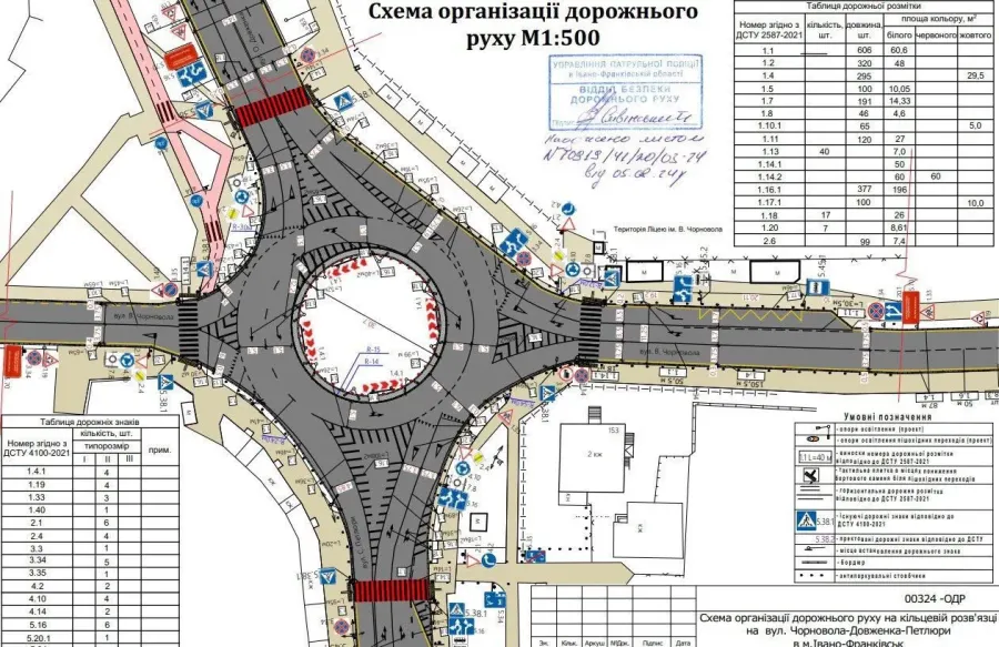 - облаштовано додатковий острівець на з’їзді з вул. Чорновола на вул. Довженка (щоб уникнути конфліктів між тими, хто рухається по кільцю, і тими, хто з’їжджає на Довженка);