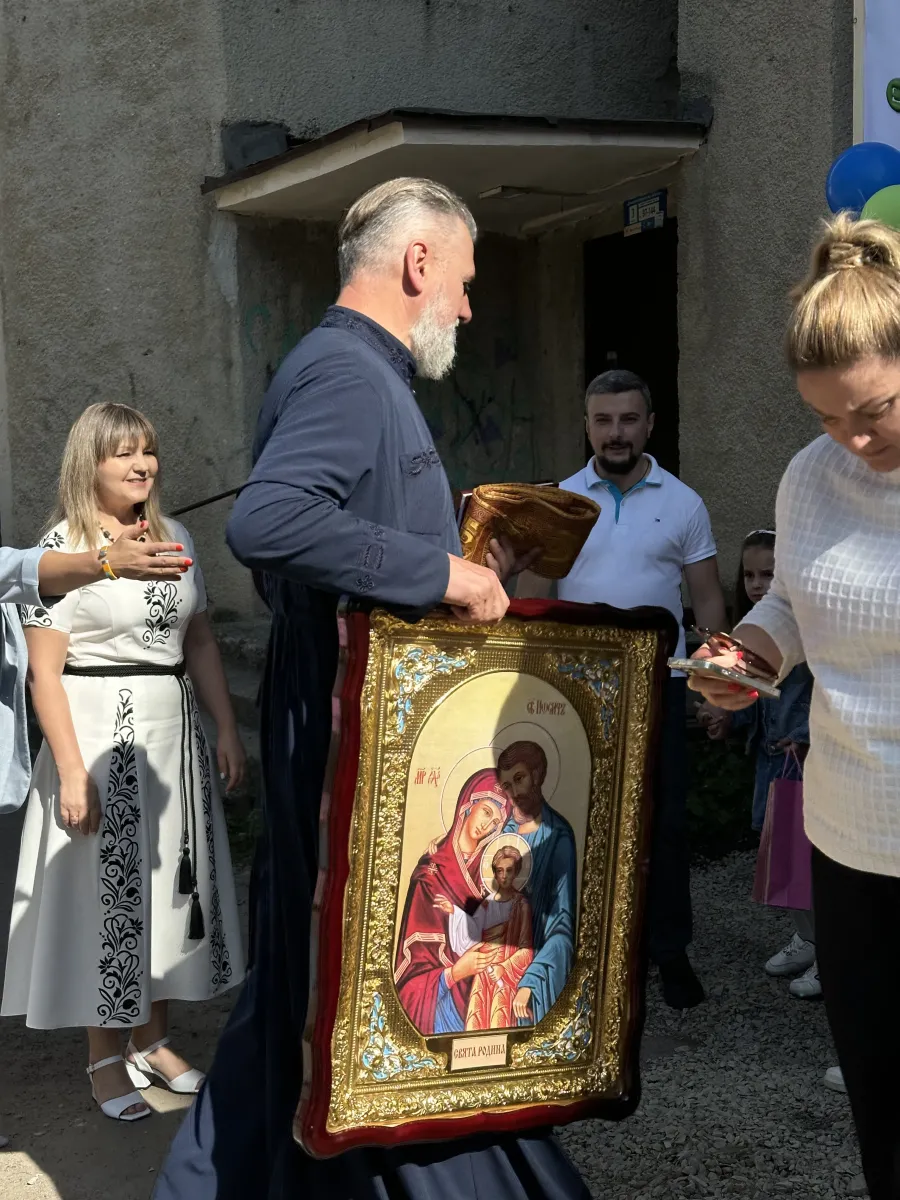 Валентина Соколовська прийшла на відкриття оновленого приміщення зі своєю 7-річною сусідкою Надійкою та 15-річною дочкою. Каже, що з 2023 року є калуськими новомістянами, а раніше доти з Миколаївщини переїхали в Івано-Франківськ. На відкритті бракує ще її 10-річного сина, котрий поїхав у табір.