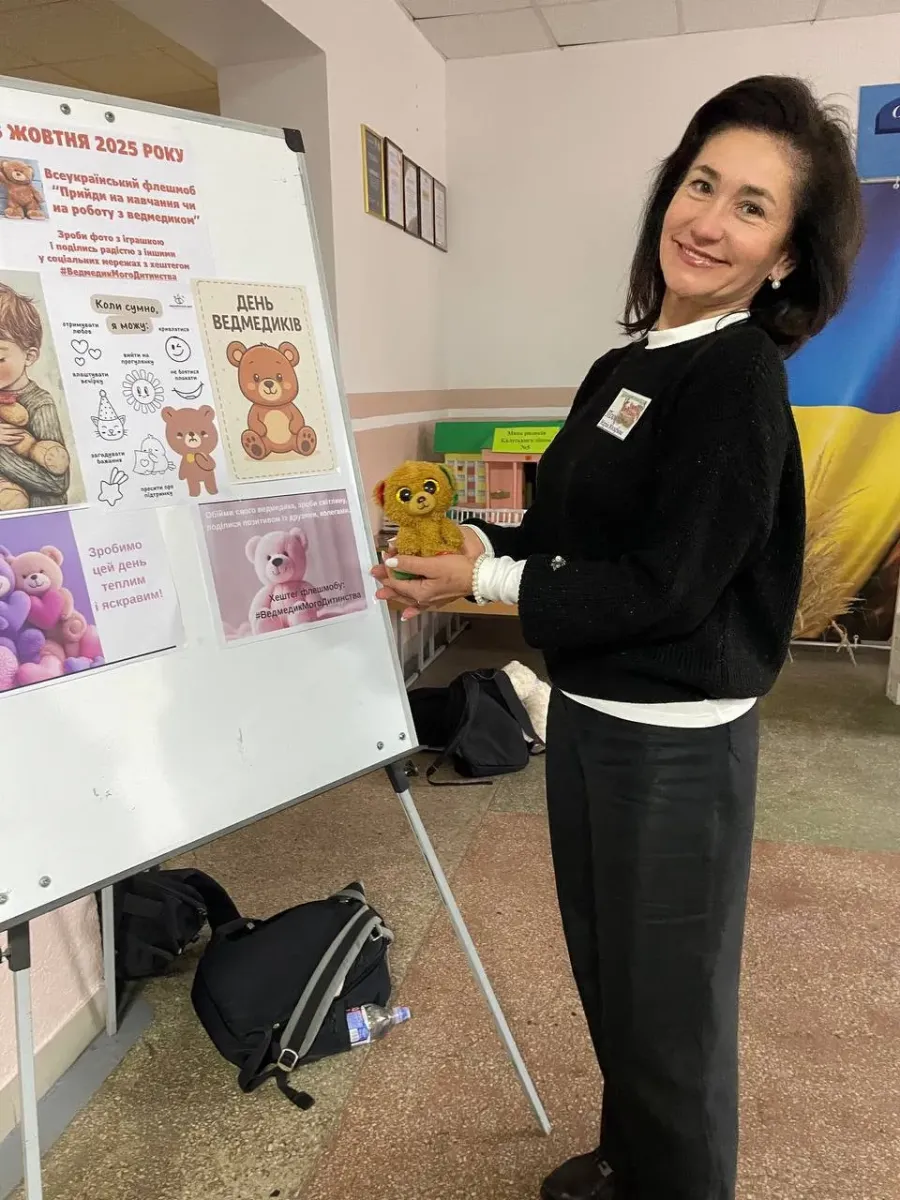 "Ведмедик — це не просто іграшка, а справжній символ тепла, затишку та турботи. Саме така атмосфера панувала у нас на уроках та перервах. Як виявилось, ця м’яка затишна іграшка здатна викликати посмішку у кожного, хто тримає її в руках і у того, хто йде йому на зустріч. Учні і вчителі із задоволенням взяли участь у активностях, які підготували для них учні-волонтери гуртка "Шкільний клуб волонтерства", — розповідають організатори акції.
