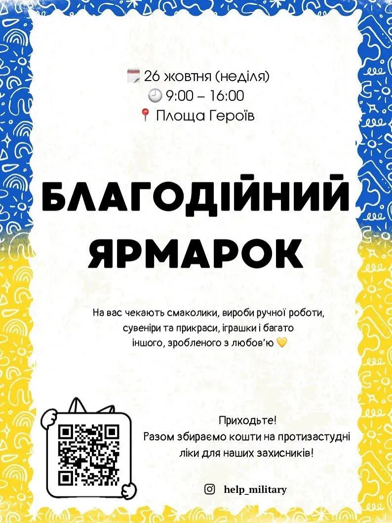 "На вас чекають смаколики, вироби ручної роботи, сувеніри та прикраси, іграшки і багато іншого, зробленого з любов’ю. Приходьте самі, приводьте друзів і рідних — кожна ваша покупка на ярмарку стане частинкою допомоги тим, хто нас захищає!", — йдеться у повідомленні.