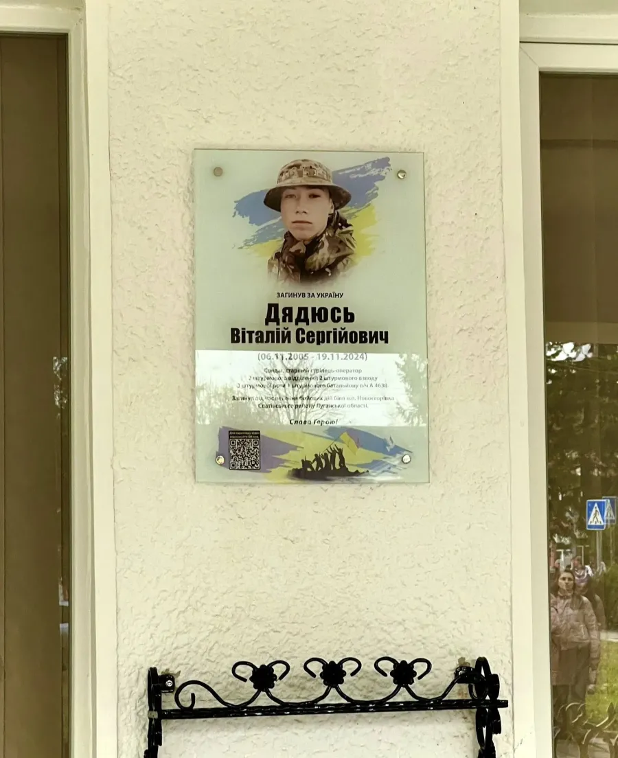 Меморіальну дошку полеглому воїну Віталію Дядюсю відкрили у неділю, 9 листопада. Це вже четверта меморіальна памʼятка на фасаді Войнилівського ліцею, повідомляє Войнилівська територіальна громада.