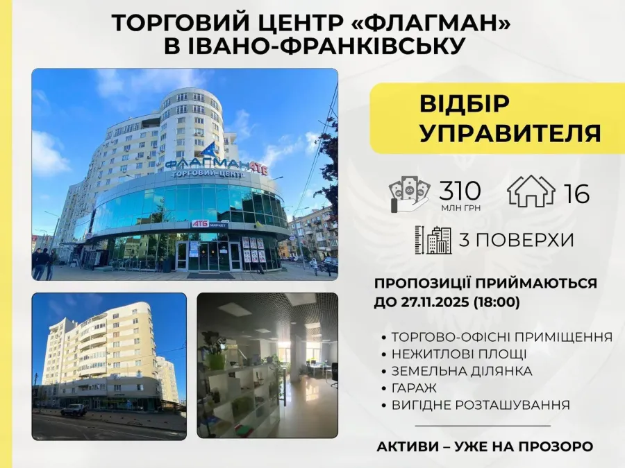 Агентство з розшуку та менеджменту активів (АРМА) оголосило на Prozorro відкриті торги з відбору управителя для арештованого торгового центру "Флагман" в Івано-Франківську, йдеться на сайті АРМА.