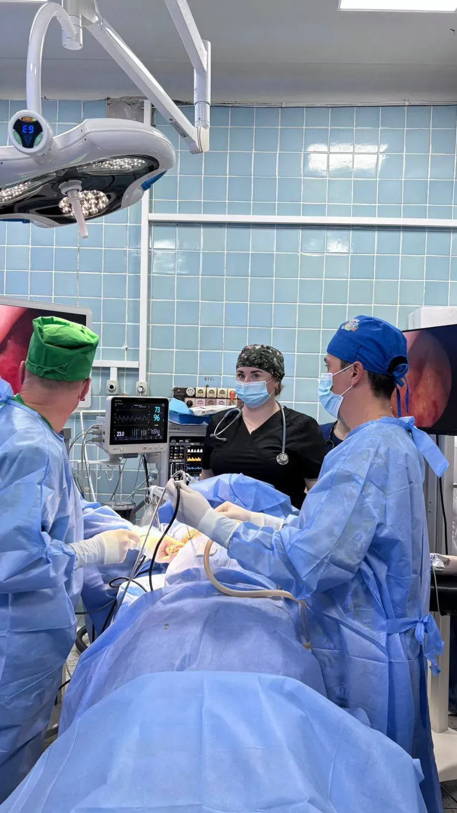 Після цього вперше в ОДКЛ провели малоінвазивну операцію — торакоскопічну резекцію ураженого сегменту правої легені. Оперативне втручання провела команда у складі хірурга Ореста Бориса, хірурга І ТМО міста Львова Андрія Дворакевича та анестезіолога Андріани Гончар.