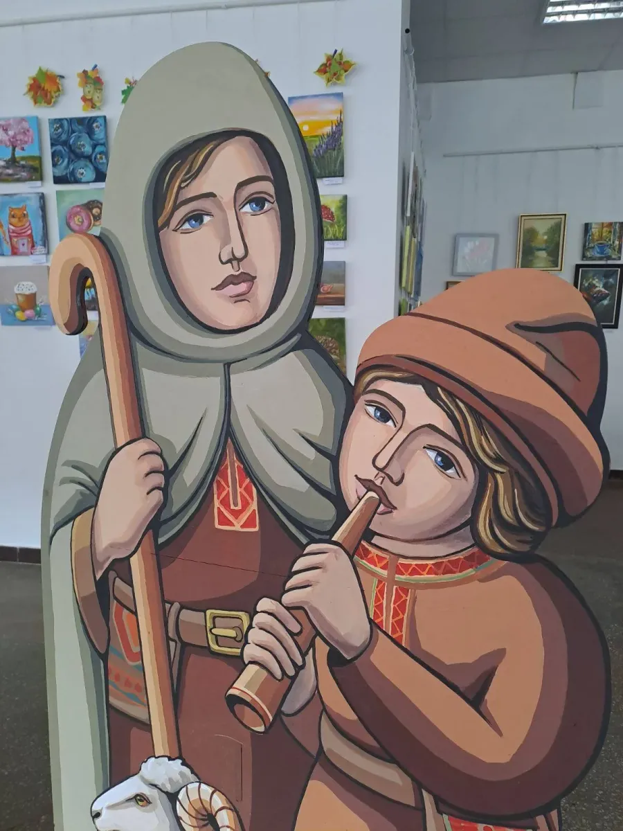 Ідея композиції належить управлінню культури, національностей та релігій, а мистецьке бачення сформував художник Мирослав Гаталевич, який розробив детальний ескіз. За його проєктом майстриня Таїсія Руда вирізала з фанери фігури, деякі з яких сягають понад 170 см заввишки.