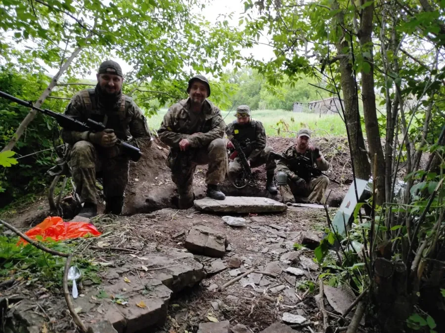 Фотографій з війни в Ігоря Чарковського дуже мало, бо служив у розвідці. Одну з улюблених — із побратимами — взяв з собою на зустріч з «Вікнами».