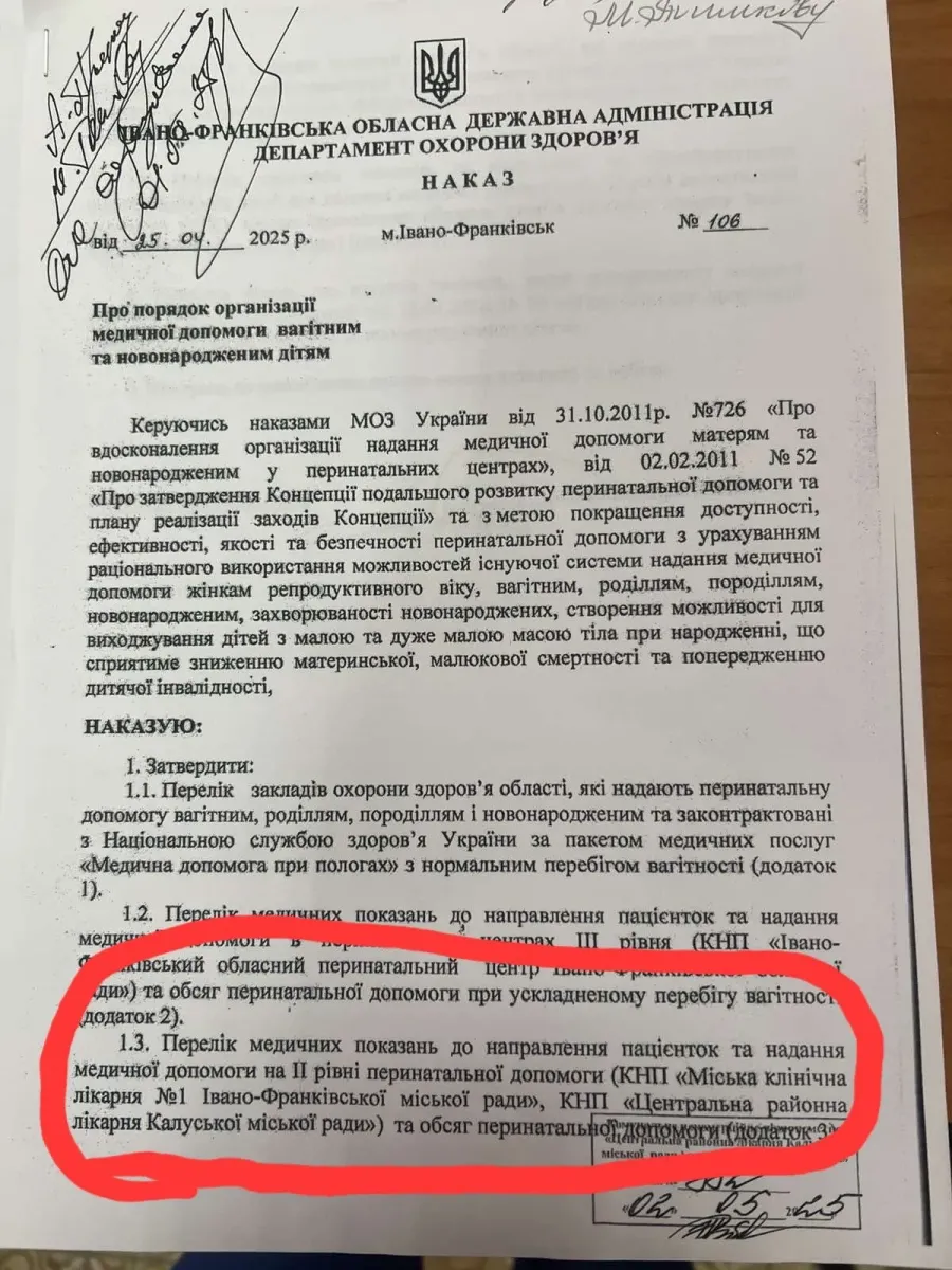 Як повідомляли «Вікна», 24 жовтня генеральний директор комунального некомерційного підприємства Калуська ЦРЛ Ярослав Мороз видав наказ «Про реорганізацію структурного підрозділу «Пологовий будинок КНП «Калуська ЦРЛ». Наказ видано на основі рішення медичної ради КНП «Калуська ЦРЛ» від 6 жовтня 2025 року.