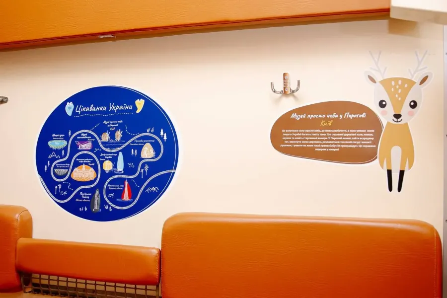 Ці вагони відрізняються від інших дитячих унікальним дизайном купе — кожне з них присвячено унікальному місцю в Україні. Яскраві картинки розповідають його історію та знайомлять з тваринами й рослинами, що там знаходяться. Наприклад, з крабиками, які живуть коло Аджигольського маяка на Херсонщині. Кажуть, що саме вони доглядають за ним.