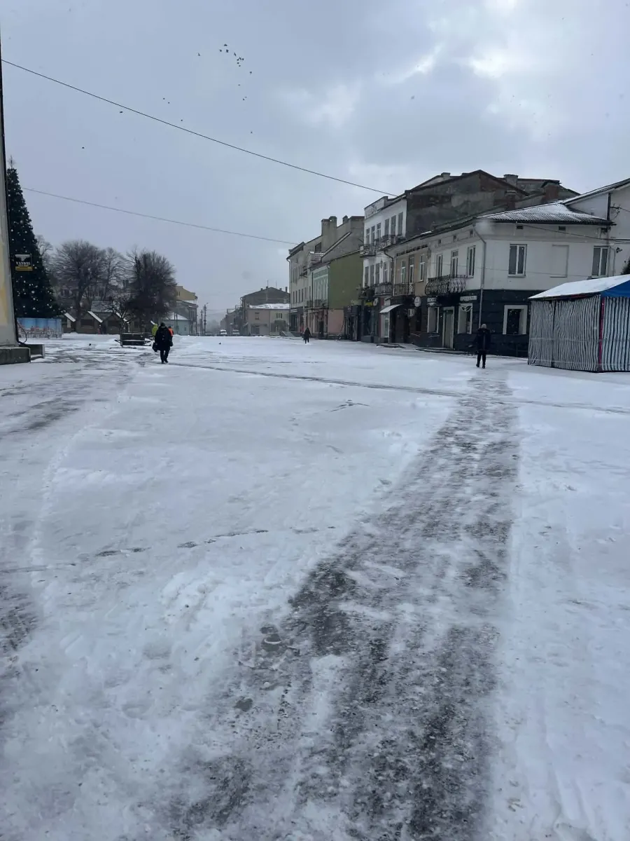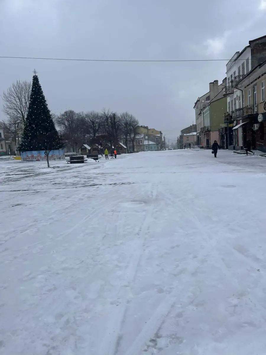 У другий день Різдва, 26 грудня, після обіду дві одиниці комунальної техніки почали підсипати центральні вулиці міста сумішшю солі з піском. Так продовжувалось і на вихідних, адже трохи притрусило снігом та вдарив вночі мороз.