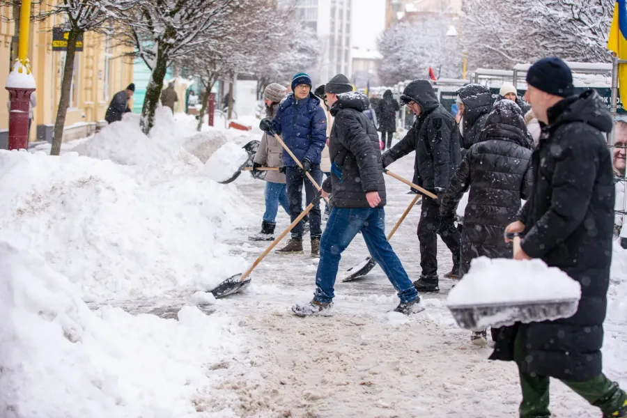 «Сьогодні нетипова ситуація: сильний снігопад у місті. Зрозуміло, що прибиральників не так багато в місті, в основному це люди старшого віку, адже хлопці служать у Збройних силах України. Деякі комунальники зараз на фортифікаційних спорудах у Донецькій області. Тому вирішили, це вже така стала добра традиція, коли великий снігопад, наші управління, департаменти, а також комунальні підприємства мають зони відповідальності й виходять працювати. Ми з вами, як патронатна служба, як і інші підрозділи, вийшли сьогодні на стометрівку на Незалежності прибрати цю вулицю і біля наших Героїв. Решта підприємств: хтось площу Міцкевича, хтось, відповідно, біля своїх департаментів, кожен має свою ділянку роботи. Я закликаю також усіх підприємців, підприємства біля себе прибрати. А також мешканців, тому що навіть якщо ти живеш в ОСББ чи житлово-експлуатаційній організації або управляючій компанії, все одно тієї кількості працюючих не вистачає. Треба й особистим прикладом показувати, що потрібно працювати і все буде добре», — зазначає міський голова Руслан Марцінків.
