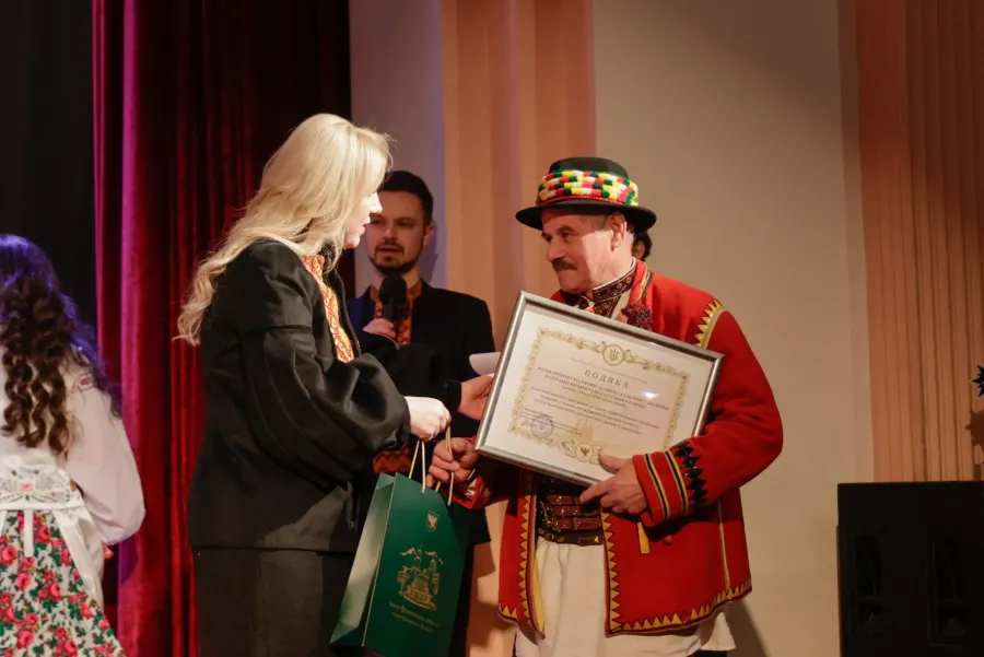 Керівник боднарівського вертепу Микола Дрогомирецький отримує подяку