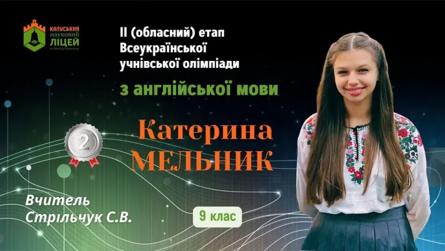 - ІІ місце — учениця 9-Б класу Катерина Мельник (вчителька Світлана Стрільчук);