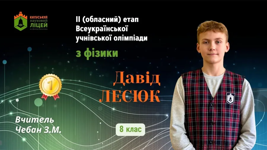 - І місце посів учень 8-А класу Давід Лесюк (вчителька Зоряна Чебан);