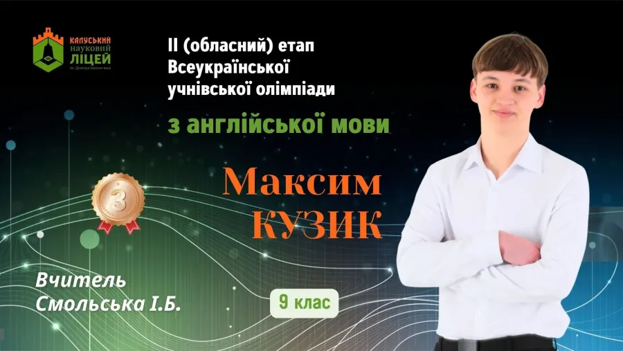 - ІІІ місце — учень 9-В класу Максим Кузик (вчителька Ірина Смольська);