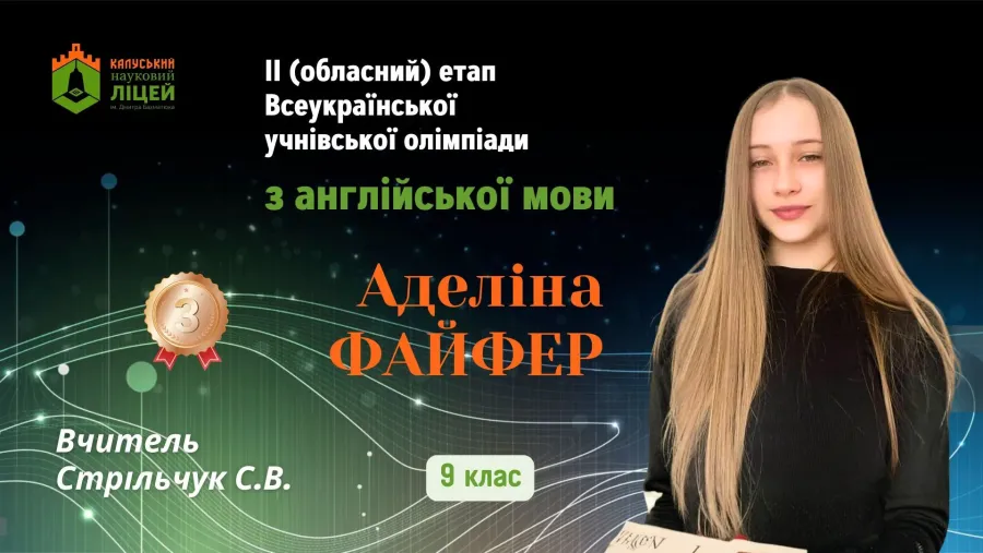 - ІІІ місце — учениця 9-Б класу Аделіна Файфер (вчителька Світлана Стрільчук);