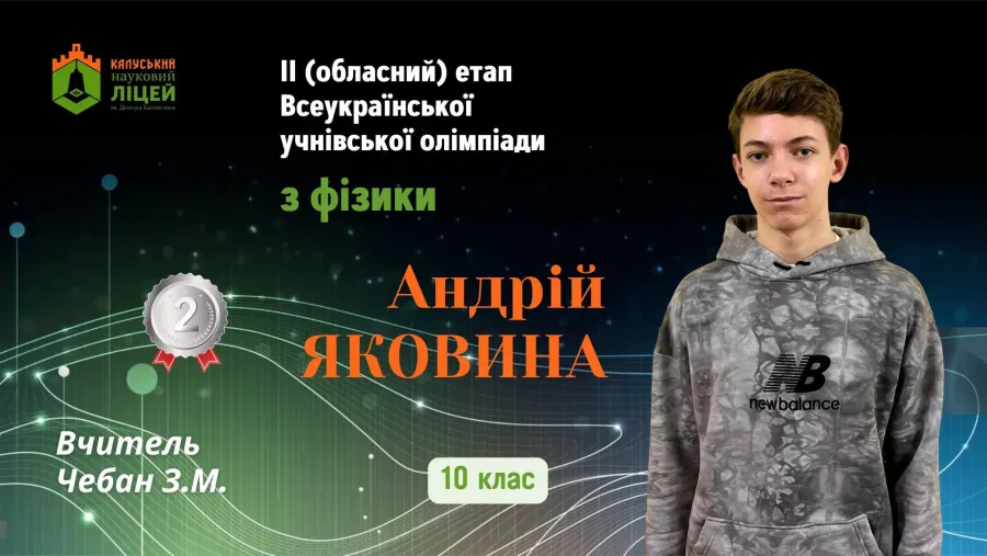 - ІІ місце зайняв учень 10-А класу Андрій Яковина (вчителька Зоряна Чебан).