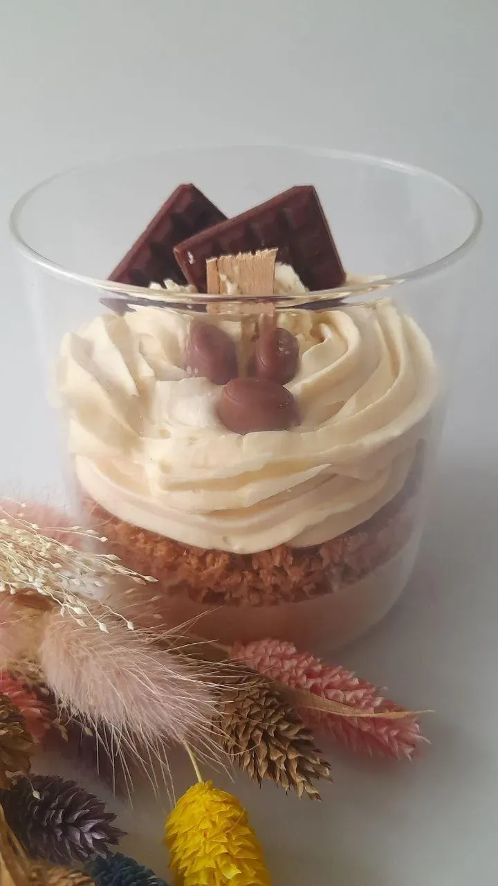«Щодо свічки-десерту, то вона займає десь до 2,5 годин і є найдорожчою — 450 гривень. Спершу із клієнтом узгоджую вигляд, колір, аромат, можливі деталі наповнення. Кілька шарів воску, що швидко застигають, потрібно спершу розтопити, потім — збивається крем і видавлюється воскова шапочка у вигляді десерту. Тобто процес приготування, як їстівного солодкого. Я часто кажу своїм дітям, що не той десерт випікаю. Полуниця, малина, ожина, кавові десерти, шоколад, новорічні пряники, з апельсиновими часточками, цукерками — серед різновидів у десертних свічках. Інколи хтось бажає окремі елементи додати: зернятка кави, шоколад, фрукти», — розповідає свічкарка.