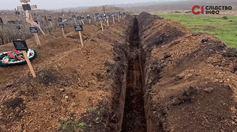 Полонених возили і на Старокримське кладовище, де вже були поховані цивільні. Там вони бачили родичів загиблих, які були проти повторних ексгумацій. Слідчі казали рідним, що це поховання ще при українській владі, і їм треба перевірити — чи не вбили цивільних. Як діставали тіла, окупанти присвоювали номера загиблим людям, а документи часто викидали назад у вириту траншею.