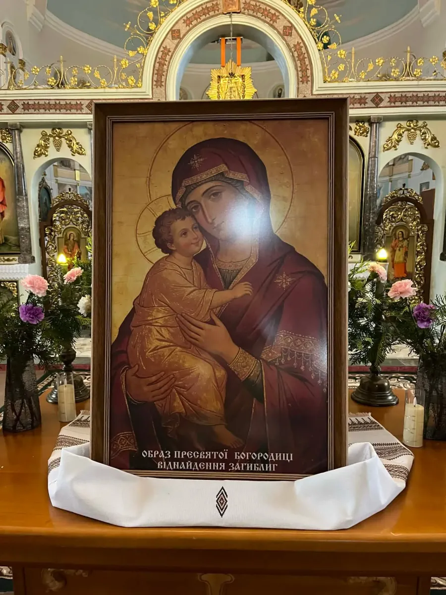 «Коли в неділю (1 лютого. — Авт.) я оголошував розпорядок богослужінь на цей тиждень, то побачив, що 5 лютого припадає пам’ять ікони Пресвятої Богородиці «Віднайдення загиблих». Ми вирішили її створити за допомогою друку на полотні, адже сучасні технології нам дозволяють це зробити в дуже короткі терміни. Бо для того, щоб ікону написав художник, потрібно декілька місяців. Сама Богородиця тоді мені цю думку дала. Церква має багато чудотворних ікон і серед них ця, до якої моляться за знайдення тих, що найперше загубився духовно від Бога. У сьогоднішньому часі, на 11 році війни, ми маємо багато зниклих безвісти й тих, хто в полоні, за яких молимося», — зазначив настоятель собору.