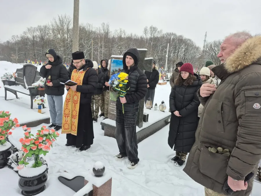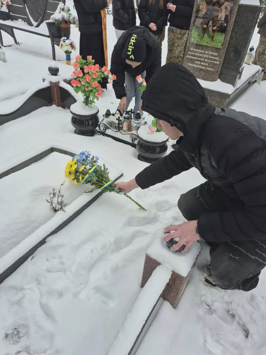 Учні 10-Б класу разом з адміністрацією закладу поклали квіти та лампадки на могилі Ігоря Дмитріва. Отець Мар’ян провів поминальну панахиду, під час якої присутні спільною молитвою вшанували пам’ять Героя.