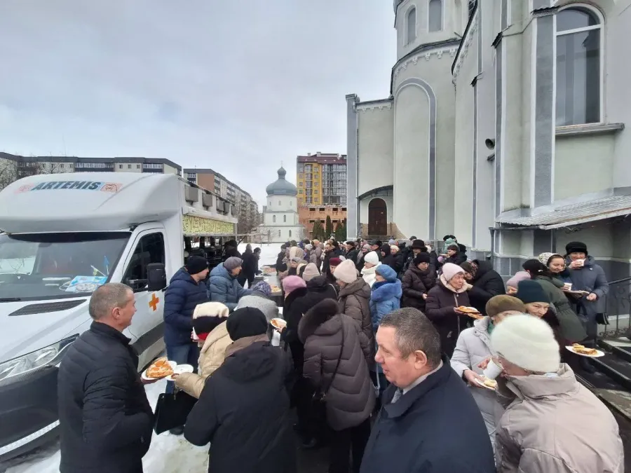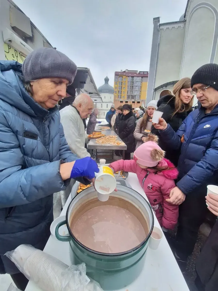 В цей день, 22 лютого, парафіяни Собору Всіх Святих Землі Української мали не лише спільну молитву, але й спільне частування на церковному подвір'ї, — інформує Калуське благочиння ПЦУ.