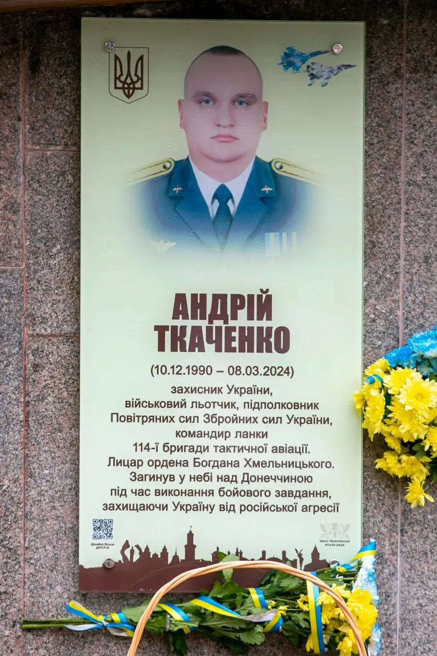 Андрій Ткаченко — захисник України, військовий льотчик, підполковник Повітряних сил Збройних сил України, командир ланки 114-ї бригади тактичної авіації. Загинув 8 березня 2024 року в небі Донеччини під час виконання бойового завдання. Військовий мав великий досвід, здійснив десятки бойових місій.