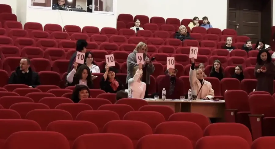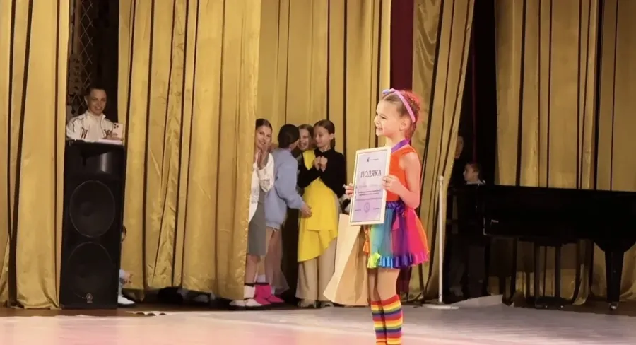 У четвер, 2 квітня, зранку у палаці культури «Юність» людно. Тут збираються разом із групами підтримки учасники двох перших номінацій конкурсу «Таланти Калуської громади 2026». У холі реєструються і прямують переодягатися та розкладатися. На сцені перед початком виступів розігріваються танцюристи. Серед них — 10-річна Анна Гром’як.