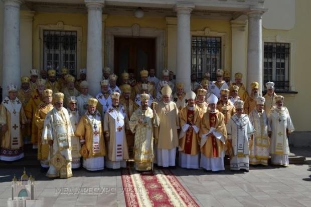 Ми, єпископи Української Греко-Католицької Церкви з України та з країн поселень українців Південної, Північної Америки, Австралії та Європи, які зібралися на черговий Священний Синод у м. Львові, усвідомлюючи свою відповідальність за повірену нам паству, підносимо голос від імені народу України та волаємо до народів світу: «Україна спливає кров’ю!» Ця мирна суверенна держава зазнала прямого військового вторгнення з боку північного сусіда. Сотні одиниць важкої зброї і техніки, тисячі озброєних найманців та військових регулярної армії Росії перетинають кордони України, сіють смерть і знищення, незважаючи на перемовини про перемир’я та дотеперішні дипломатичні зусилля. Водночас триває нечувана за масштабами ненависті та спотворення істинного стану речей пропаганда, яка є не менше руйнівною, ніж зброя масового ураження.